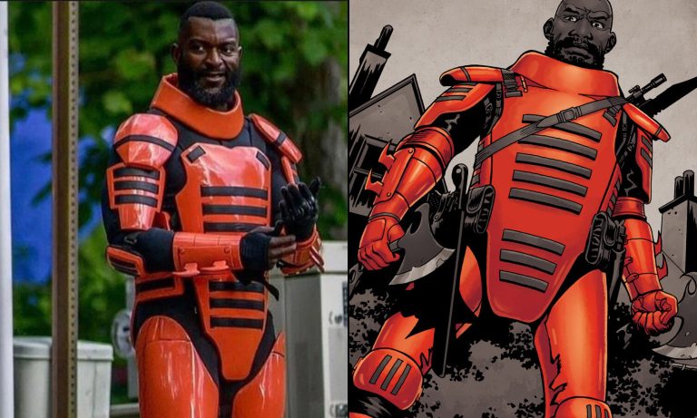 Mercer aparece com sua icônica armadura vermelha em uma imagem do set de filmagens da 11ª e última temporada de The Walking Dead.