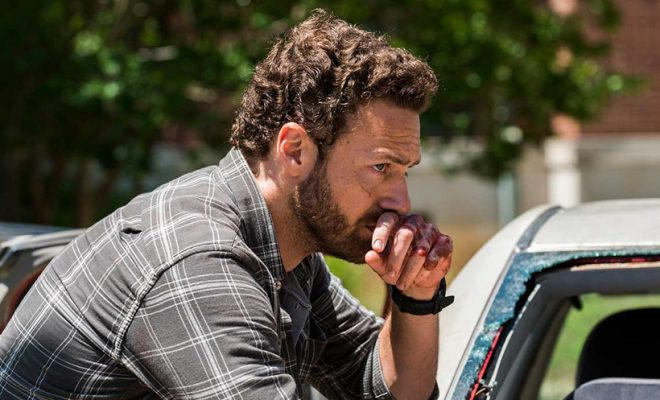 Ross Marquand: Isso não foi bem um consolo, mas uma declaração de fato. Scott estava tentando dizer: “Você pode seguir essa criatura se quiser. Não é o Eric. Você precisa perceber que o desfecho que você está esperando não virá do zumbi Eric. Seu namorado agora é um zumbi.” É um momento doloroso. Lembro-me de quando filmei e não foi divertido. As lágrimas vieram naturalmente porque realmente gostei de trabalhar com Jordan Woods-Robinson nesses últimos três anos. Nós ficamos muito próximos tanto na tela quanto fora e foi triste tanto para Aaron quanto para mim como ator.